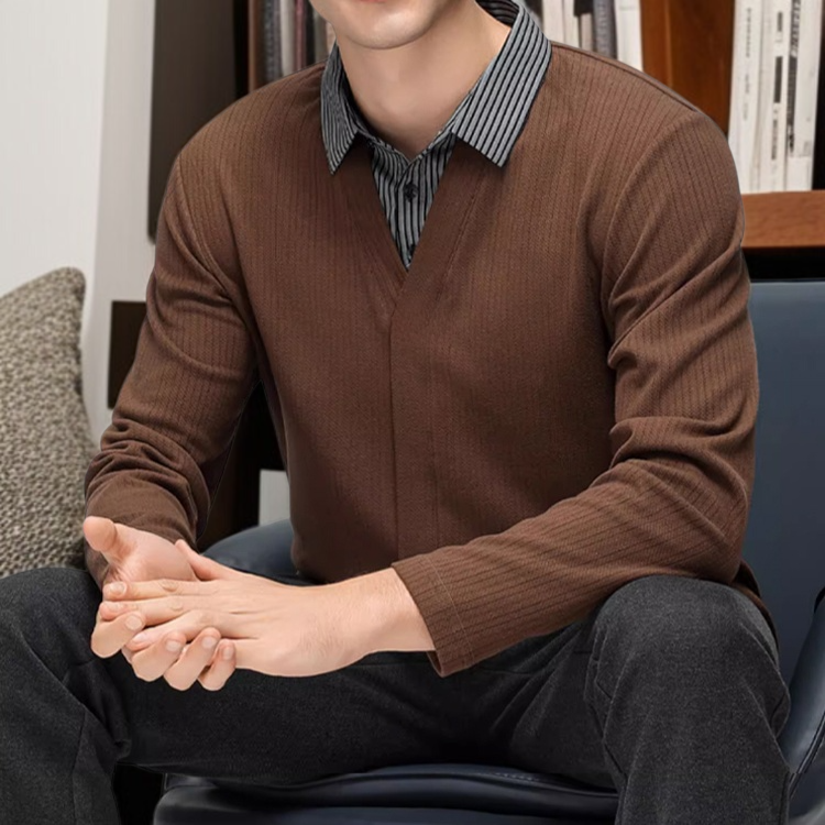 남자 루즈핏 맨투맨 데일리 통근 니트 긴팔 휴가 투피스 스트라이프 맨투맨 루즈핏 긴팔 니트 탑
